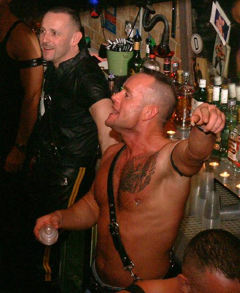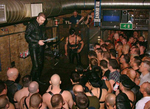 The judges took their seats: 3 leathermen on the left (two from America and one from New Zealand) and 2 guys from QX magazine on the right.