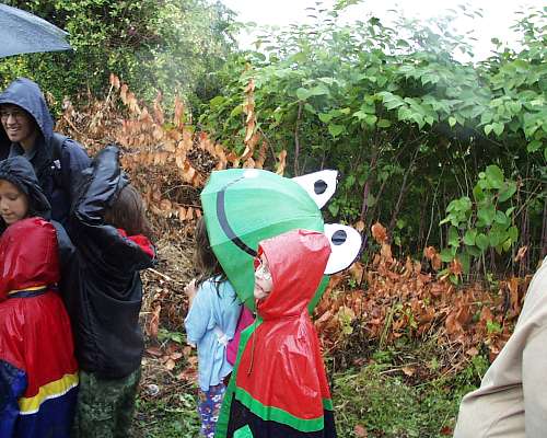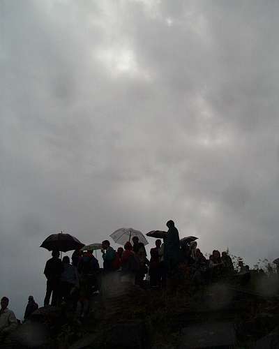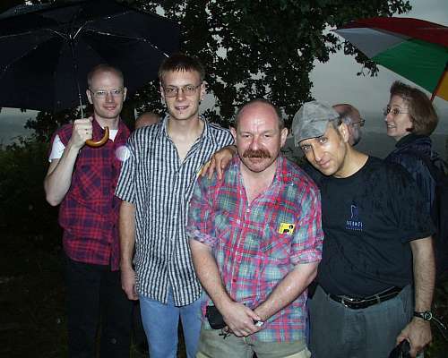 John, Markus, Rudi and Michael celebrated the return of the sun with a primitive yet powerful ceremony which involved standing bedraggled in a line under a convenient tree in rain-sodden clothing.