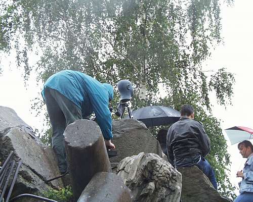 When we arrived in Stuttgart though, it didn't look hopeful. Clouds and rain were forecast. Rudi and Michael suggested we should go to the top of a landfill site built fifty years ago with the rubble from Stuttgart's bombed-out remains. On the morning of the eclipse we joined hundreds of others seeking the best chance of observing the moon's shadow racing towards us - the view on a clear day was claimed to be as far as the Alps.