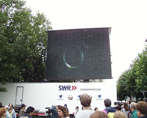 Just as we decided that Cornwall was going to be too crowded to see The Great Eclipse, an e-mail dropped out of the blue from our friends Rudi and Michael in Stuttgart. "Are you going to come and see the eclipse with us?" they asked. We hadn't realised that their home city was right slap on the middle of the path of totality. "Are you kidding?" we replied. Within a few days we'd booked our flights and then smugly told our English friends that we were going to have a much better chance of seeing this great event than they were. We wouldn't be stuck on the M5 on our way to Cornwall.